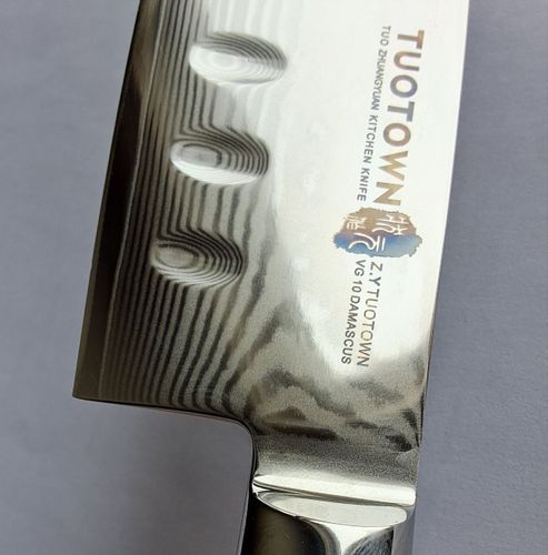 Клинок этого ножа выполнен из ламината, созданного из комбинации нержавеющего дамаска и высокоуглеродистой коррозионно-стойкой стали VG-10. Это обеспечивает долговечность клинка и его твёрдость около 60 единиц по шкале Роквелла.